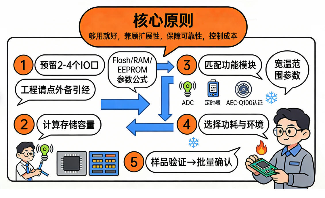 六、MCU 选型与采购实战指南(科学方法,工程可落地)